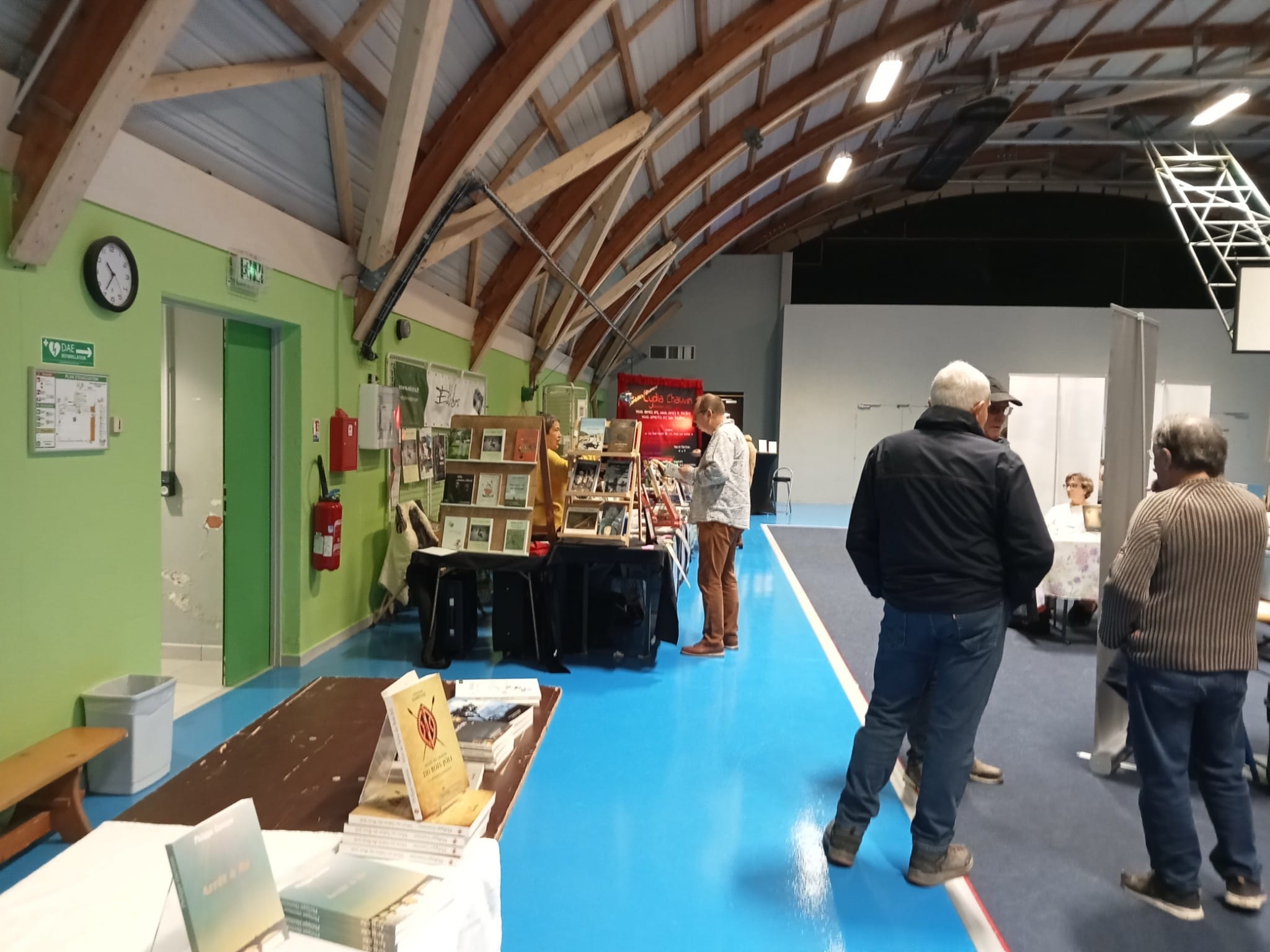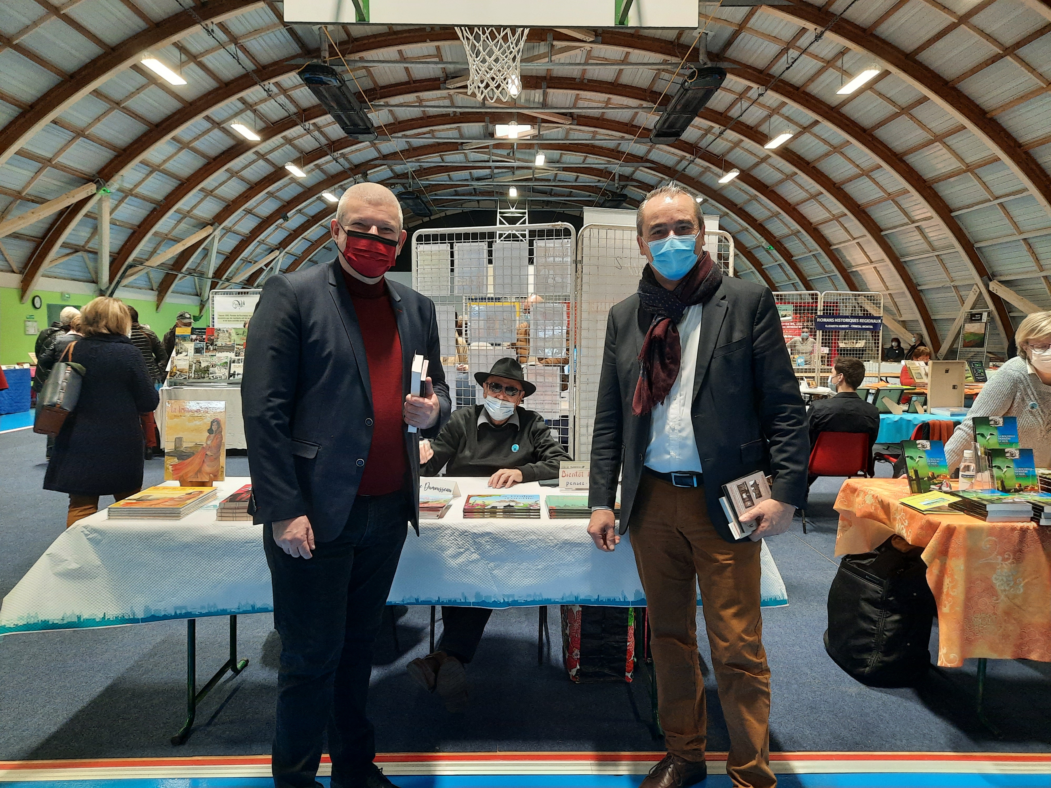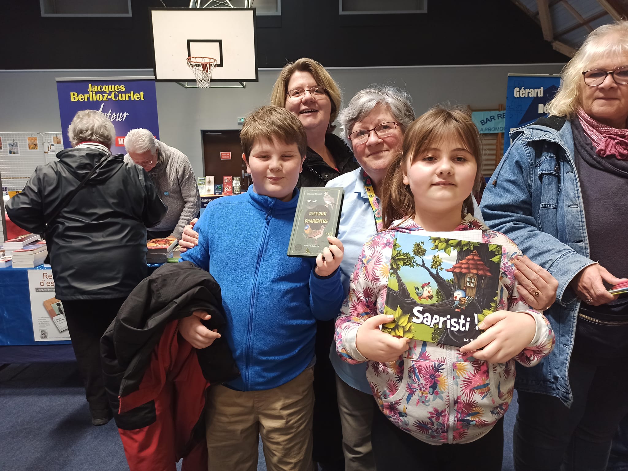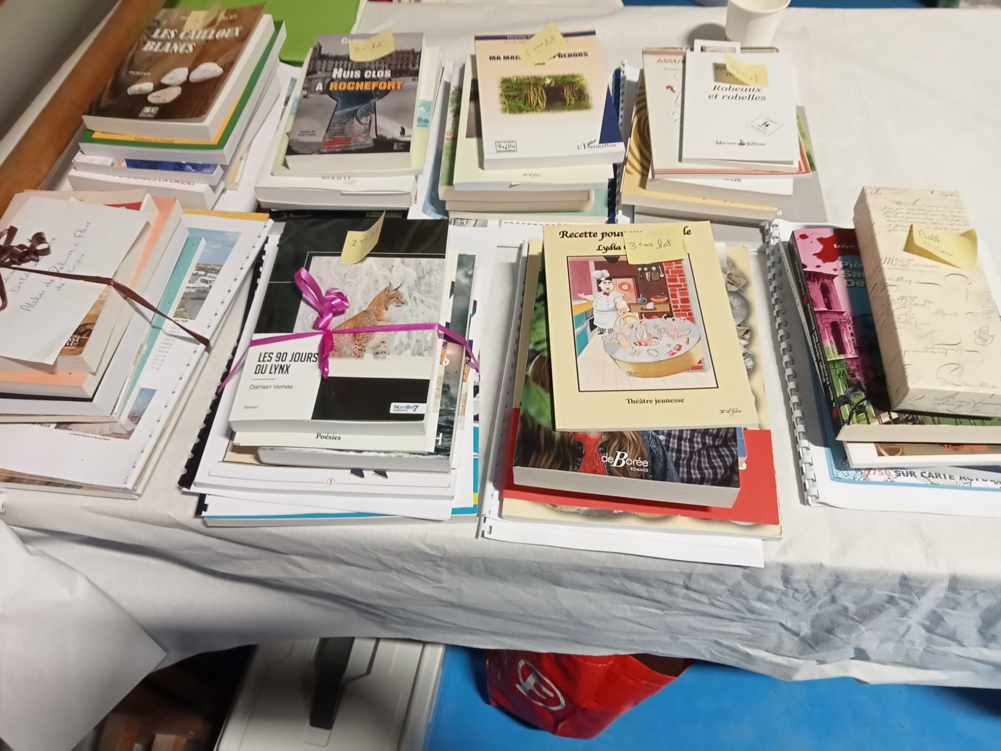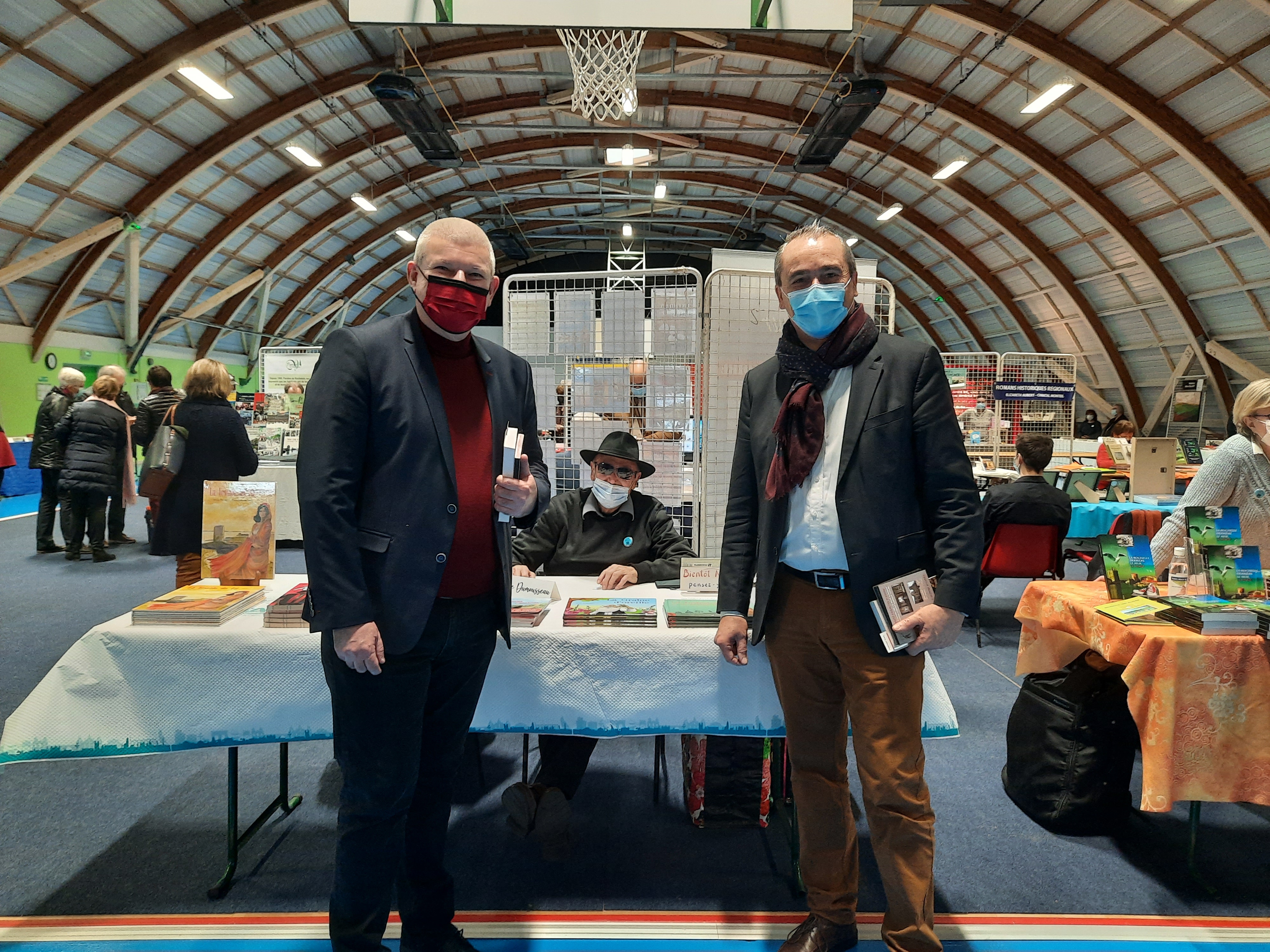 Le Dimanche s’est tenu le salon du livre local (3è édition) avec auteurs, illustrateurs, éditeurs et métiers du livre (reliure, calligraphie…) venus de max 50km autour du village. C’était l’occasion de remettre les prix aux lauréats de la dictée par le parrain Luc Turlan (merci aux exposants pour les lots, de beaux et nombreux livres ont honoré les lauréats), l’ouverture du salon a été réalisée en présence de notre député Olivier Falorni et le maire Jean-Luc Algay. Le prix de la plus belle écriture a été choisi à l’aveugle par Luc et son illustratrice. 2 enfants ont participé et on été récompensés. Le conseil d’administration s’était réuni pour préparer ce moment, une commission de sélection s’était concertée pour choisir une palette d’auteurs variés. La déco de l’espace ST Exupéry a été réalisée en collaboration avec l’Atelier Peinture du village.