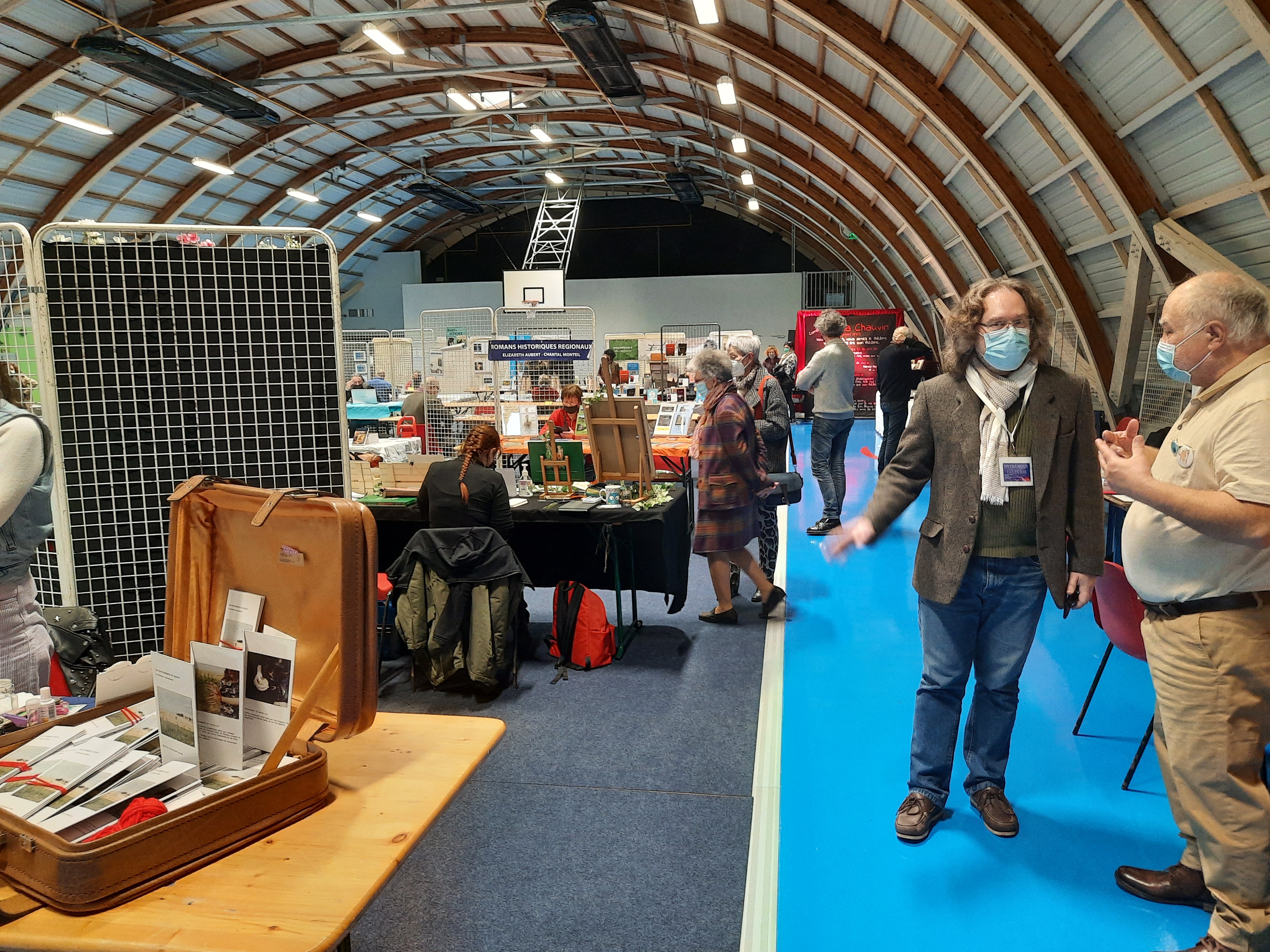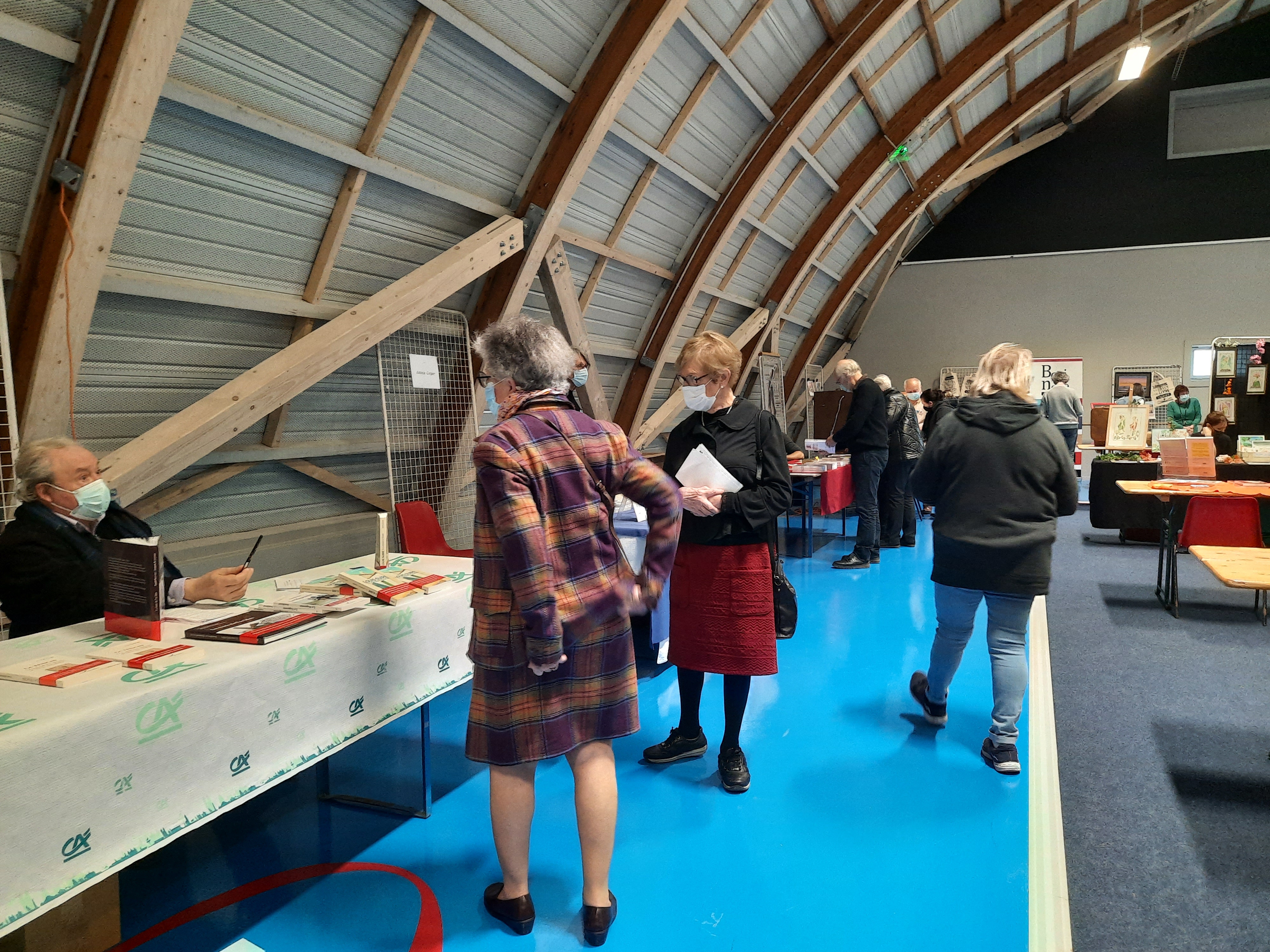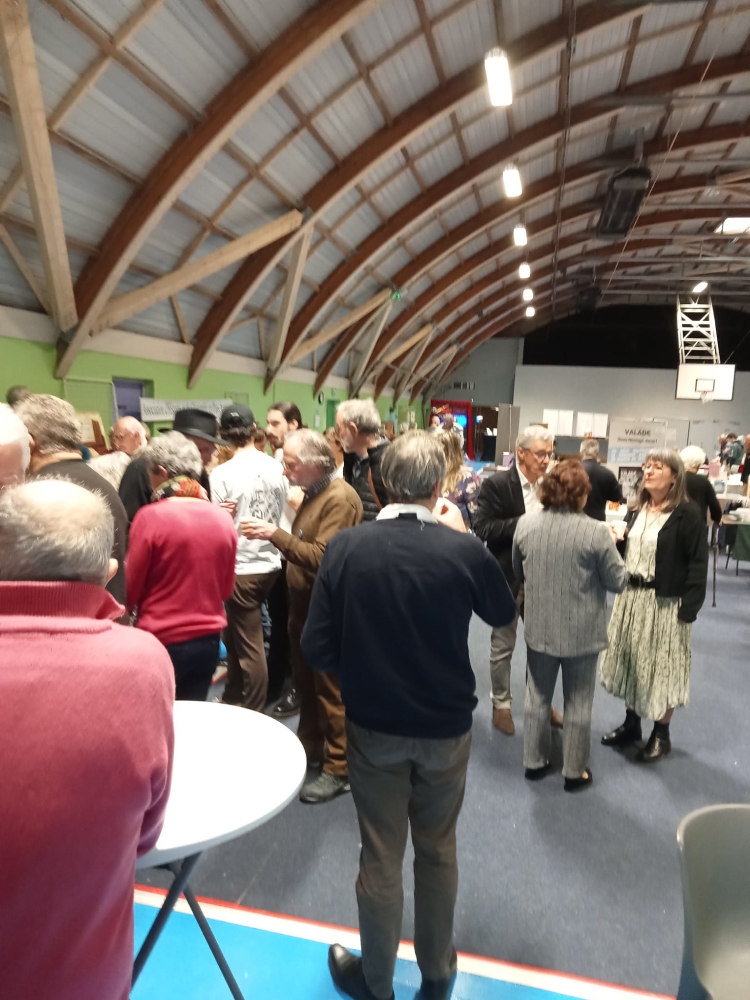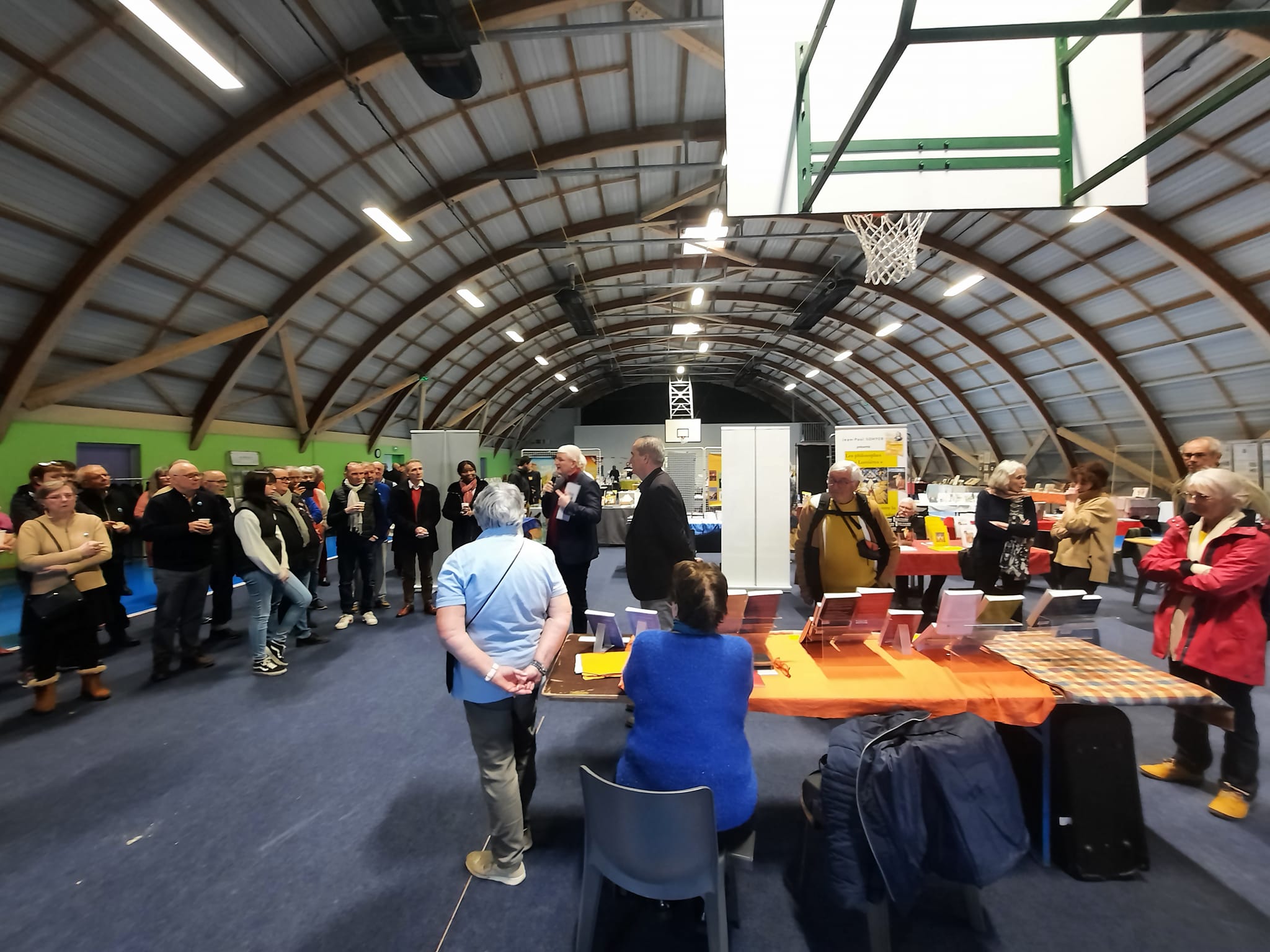 Le Dimanche s’est tenu le salon du livre local (3è édition) avec auteurs, illustrateurs, éditeurs et métiers du livre (reliure, calligraphie…) venus de max 50km autour du village. C’était l’occasion de remettre les prix aux lauréats de la dictée par le parrain Luc Turlan (merci aux exposants pour les lots, de beaux et nombreux livres ont honoré les lauréats), l’ouverture du salon a été réalisée en présence de notre député Olivier Falorni et le maire Jean-Luc Algay. Le prix de la plus belle écriture a été choisi à l’aveugle par Luc et son illustratrice. 2 enfants ont participé et on été récompensés. Le conseil d’administration s’était réuni pour préparer ce moment, une commission de sélection s’était concertée pour choisir une palette d’auteurs variés. La déco de l’espace ST Exupéry a été réalisée en collaboration avec l’Atelier Peinture du village.
