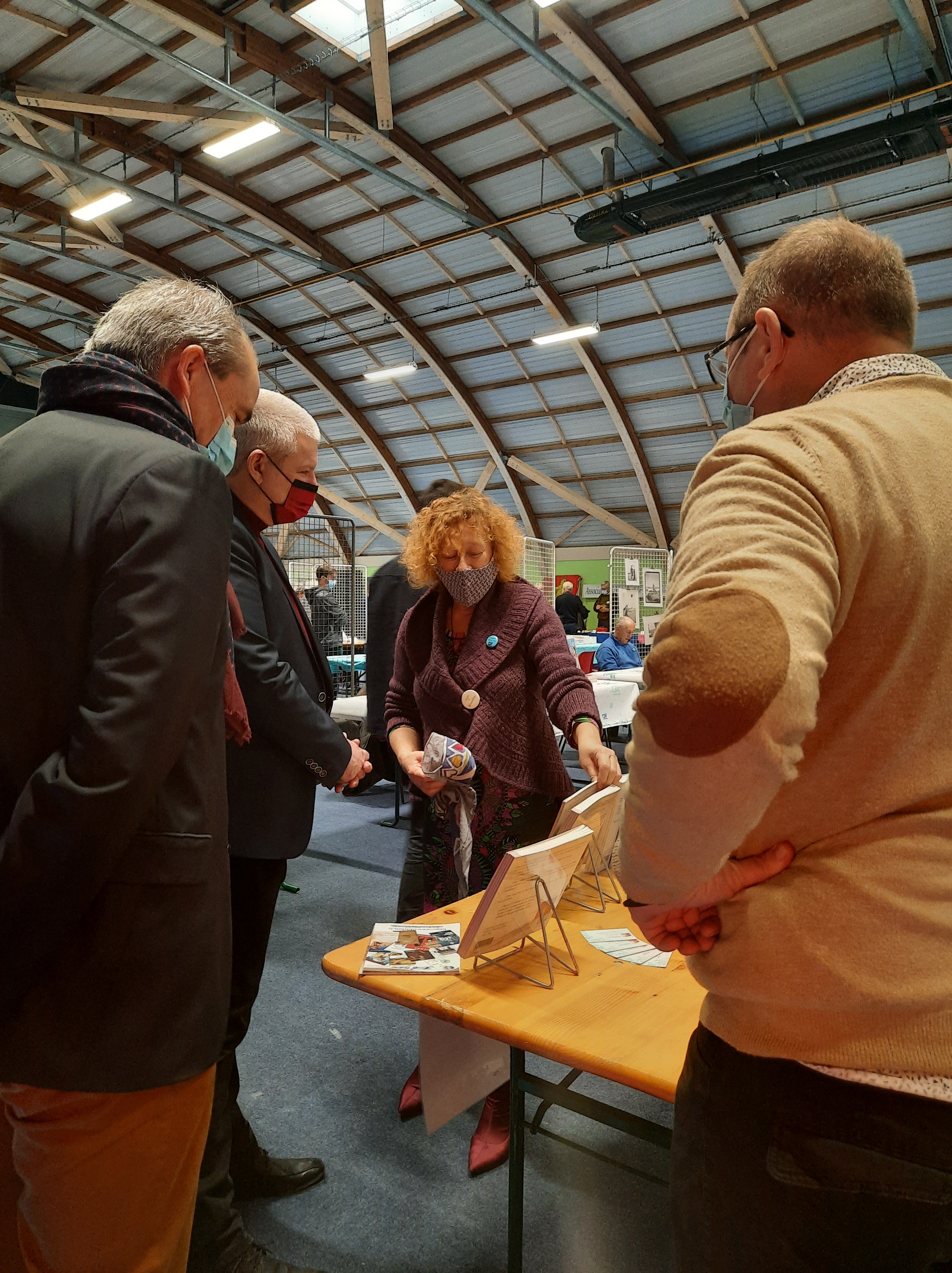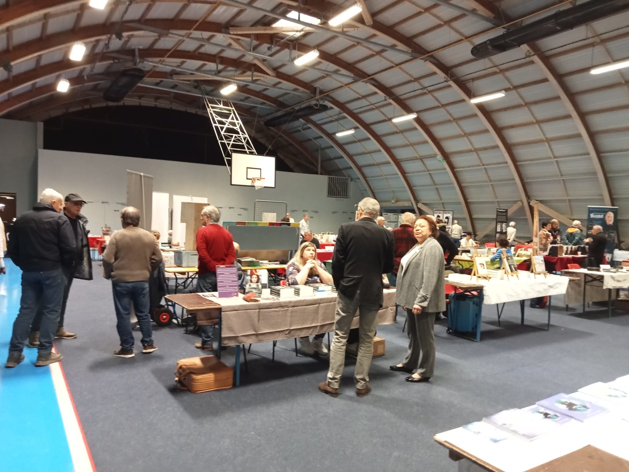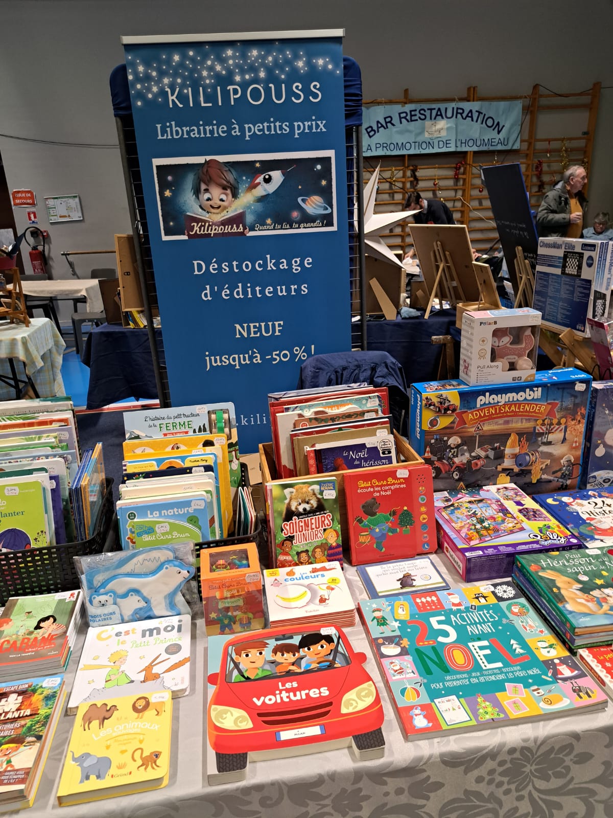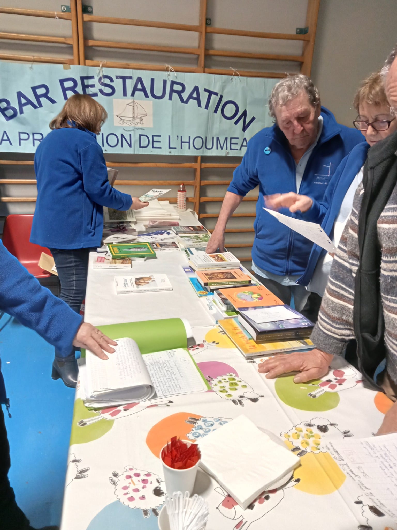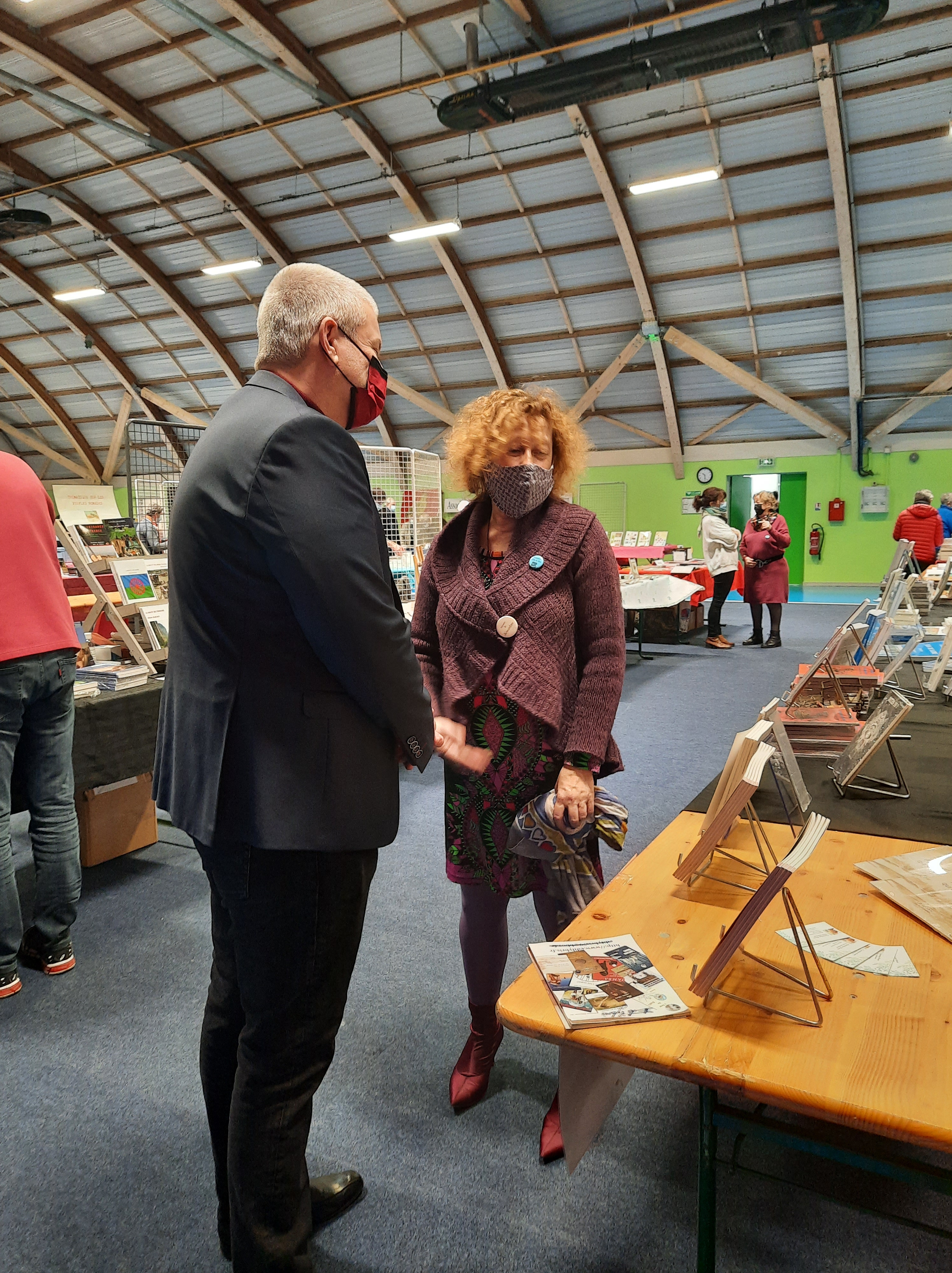 Le Dimanche s’est tenu le salon du livre local (3è édition) avec auteurs, illustrateurs, éditeurs et métiers du livre (reliure, calligraphie…) venus de max 50km autour du village. C’était l’occasion de remettre les prix aux lauréats de la dictée par le parrain Luc Turlan (merci aux exposants pour les lots, de beaux et nombreux livres ont honoré les lauréats), l’ouverture du salon a été réalisée en présence de notre député Olivier Falorni et le maire Jean-Luc Algay. Le prix de la plus belle écriture a été choisi à l’aveugle par Luc et son illustratrice. 2 enfants ont participé et on été récompensés. Le conseil d’administration s’était réuni pour préparer ce moment, une commission de sélection s’était concertée pour choisir une palette d’auteurs variés. La déco de l’espace ST Exupéry a été réalisée en collaboration avec l’Atelier Peinture du village.