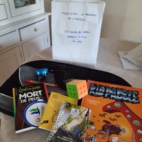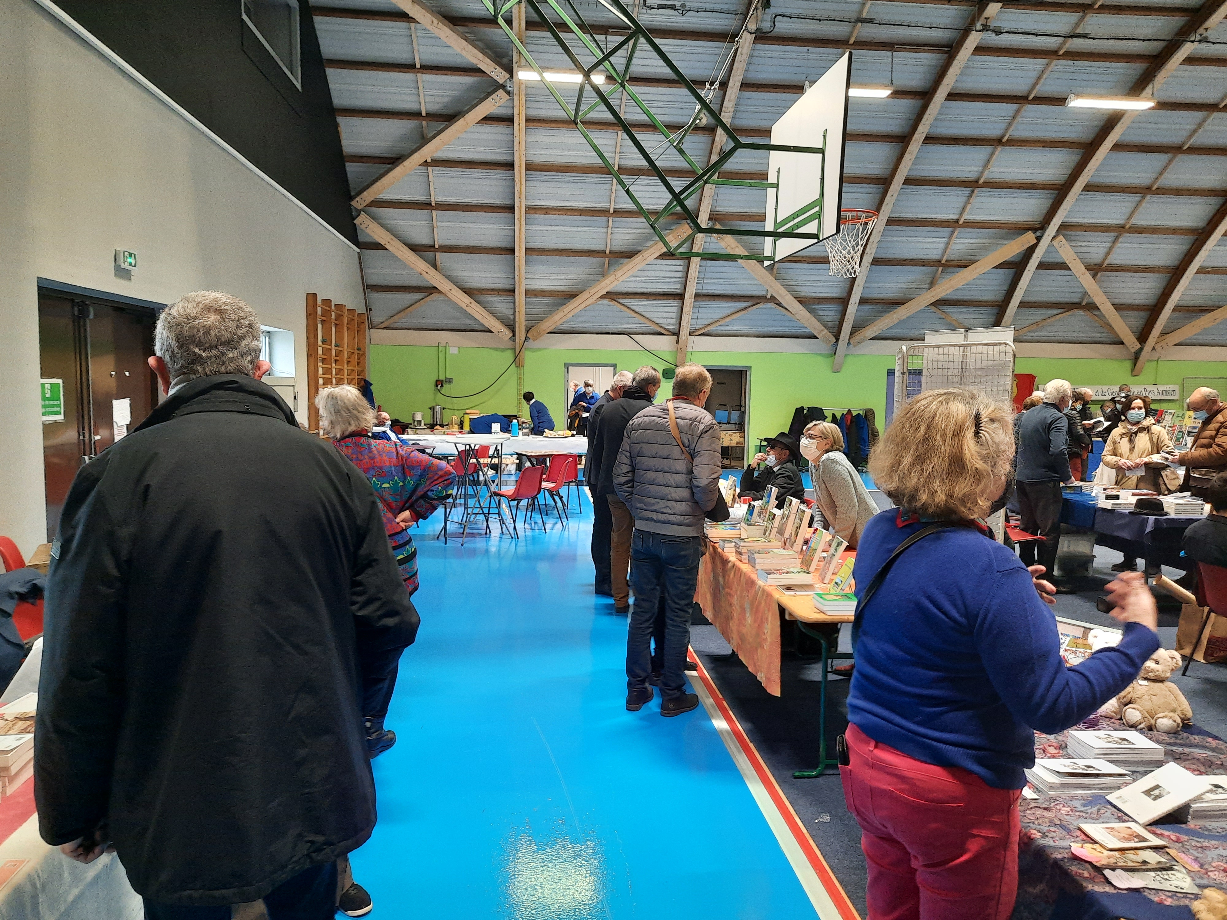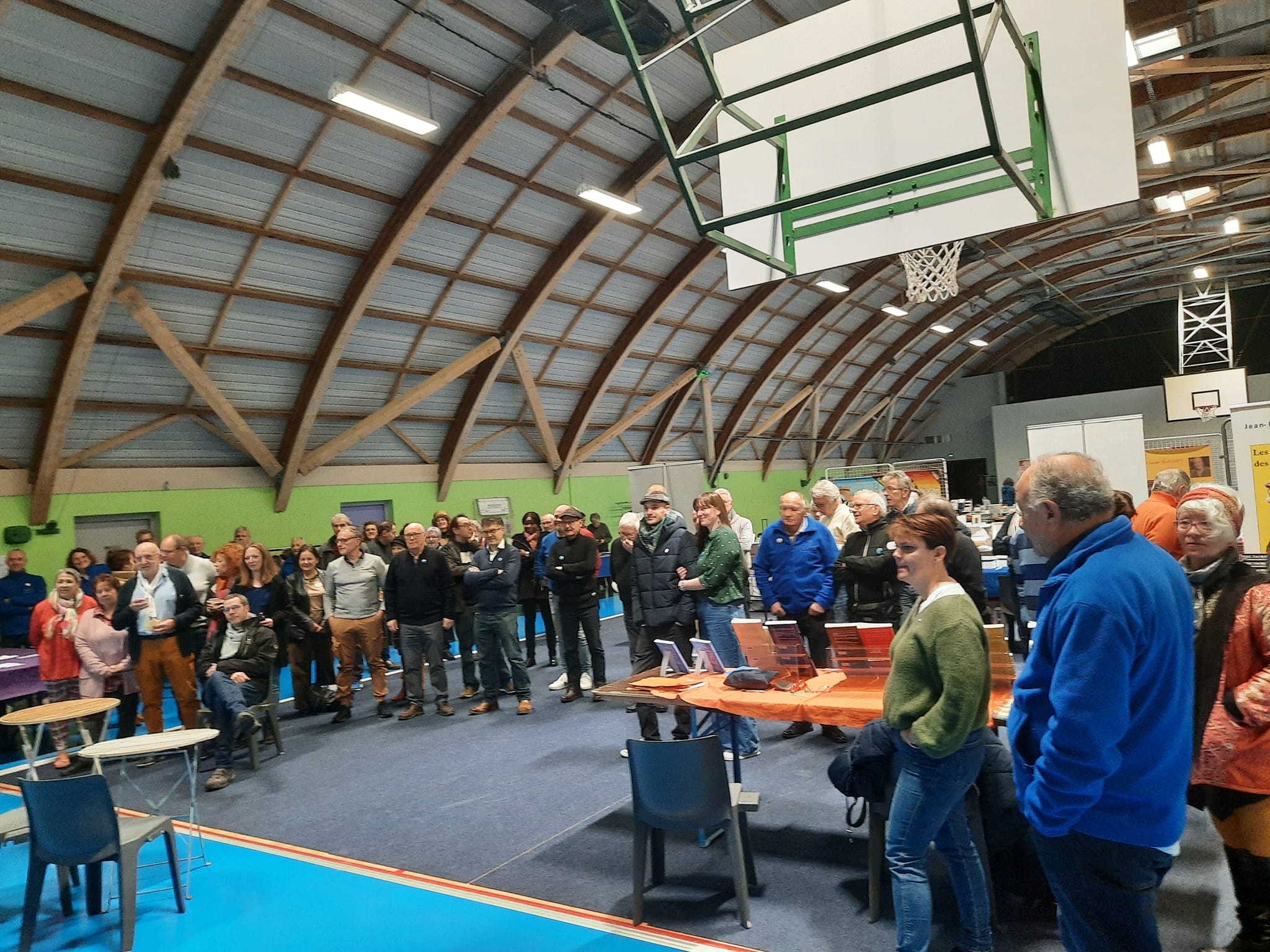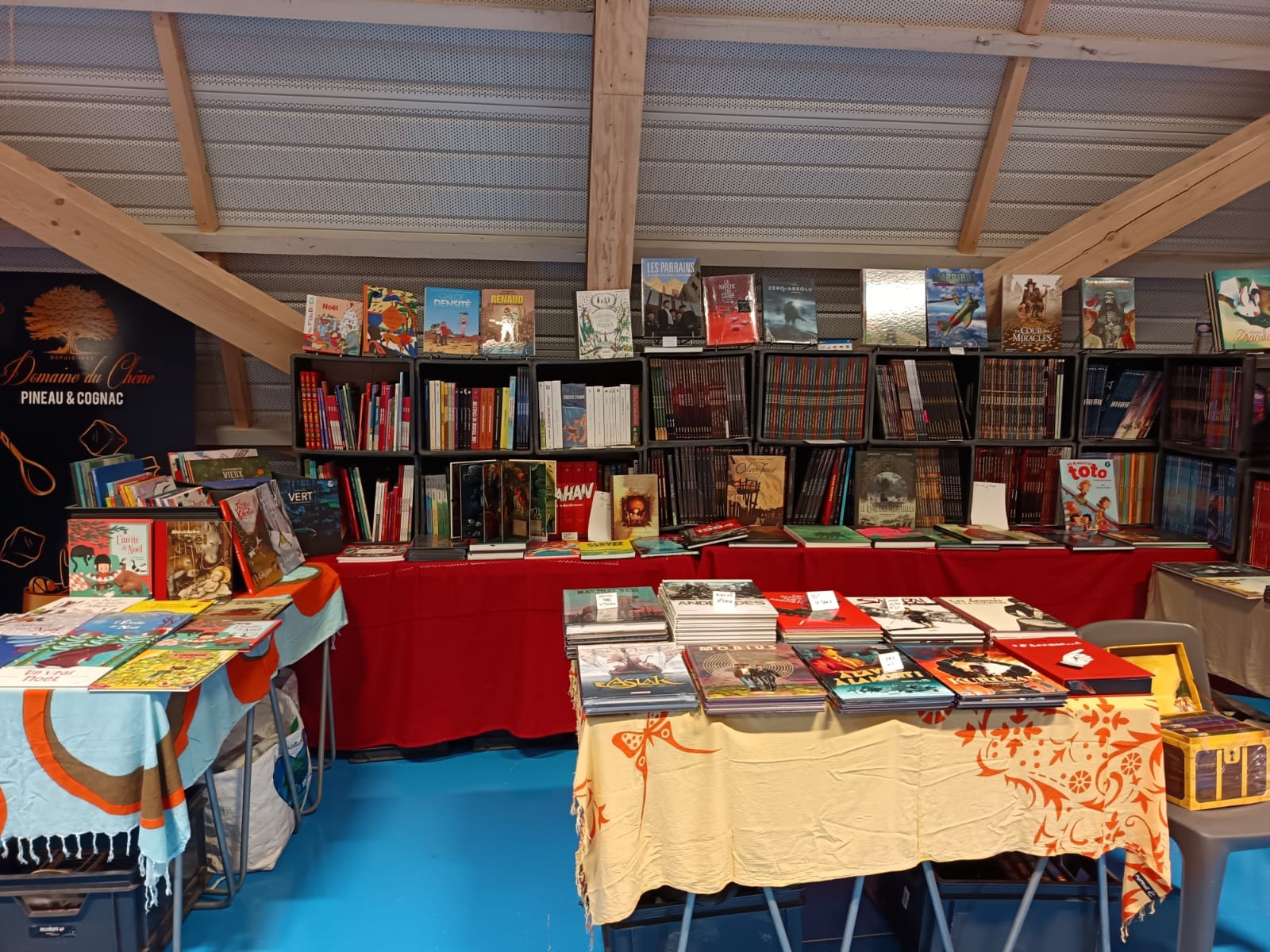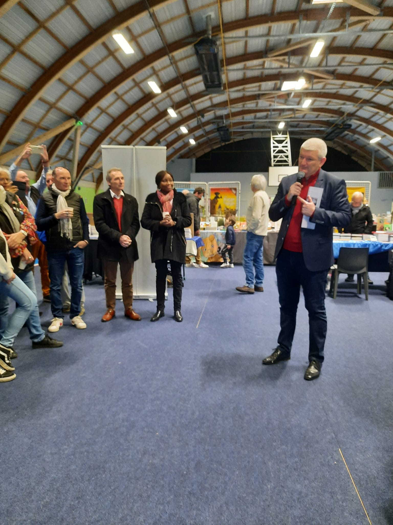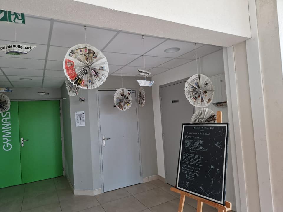 Le Dimanche s’est tenu le salon du livre local (3è édition) avec auteurs, illustrateurs, éditeurs et métiers du livre (reliure, calligraphie…) venus de max 50km autour du village. C’était l’occasion de remettre les prix aux lauréats de la dictée par le parrain Luc Turlan (merci aux exposants pour les lots, de beaux et nombreux livres ont honoré les lauréats), l’ouverture du salon a été réalisée en présence de notre député Olivier Falorni et le maire Jean-Luc Algay. Le prix de la plus belle écriture a été choisi à l’aveugle par Luc et son illustratrice. 2 enfants ont participé et on été récompensés. Le conseil d’administration s’était réuni pour préparer ce moment, une commission de sélection s’était concertée pour choisir une palette d’auteurs variés. La déco de l’espace ST Exupéry a été réalisée en collaboration avec l’Atelier Peinture du village.