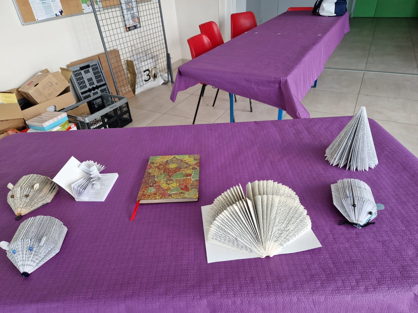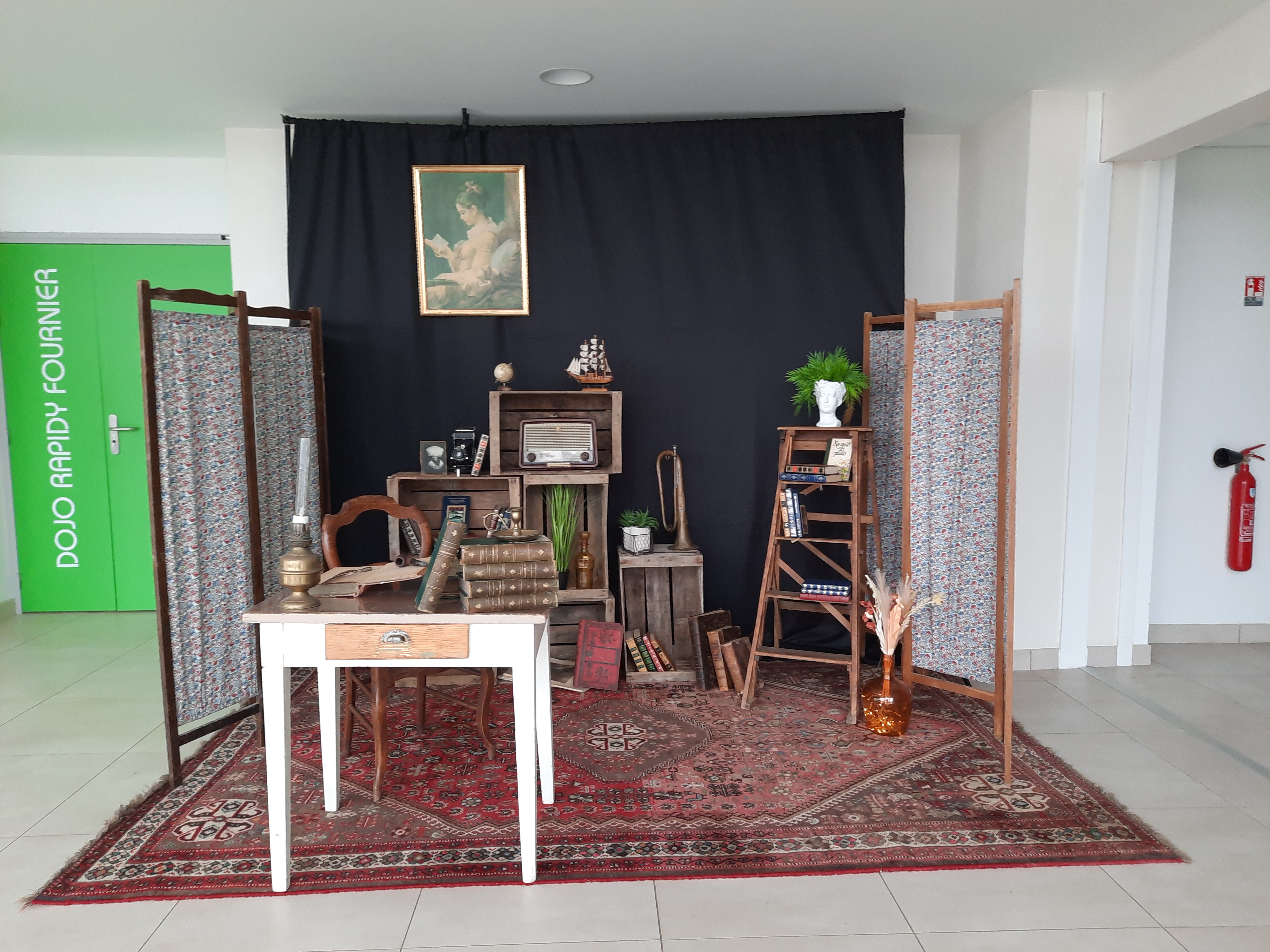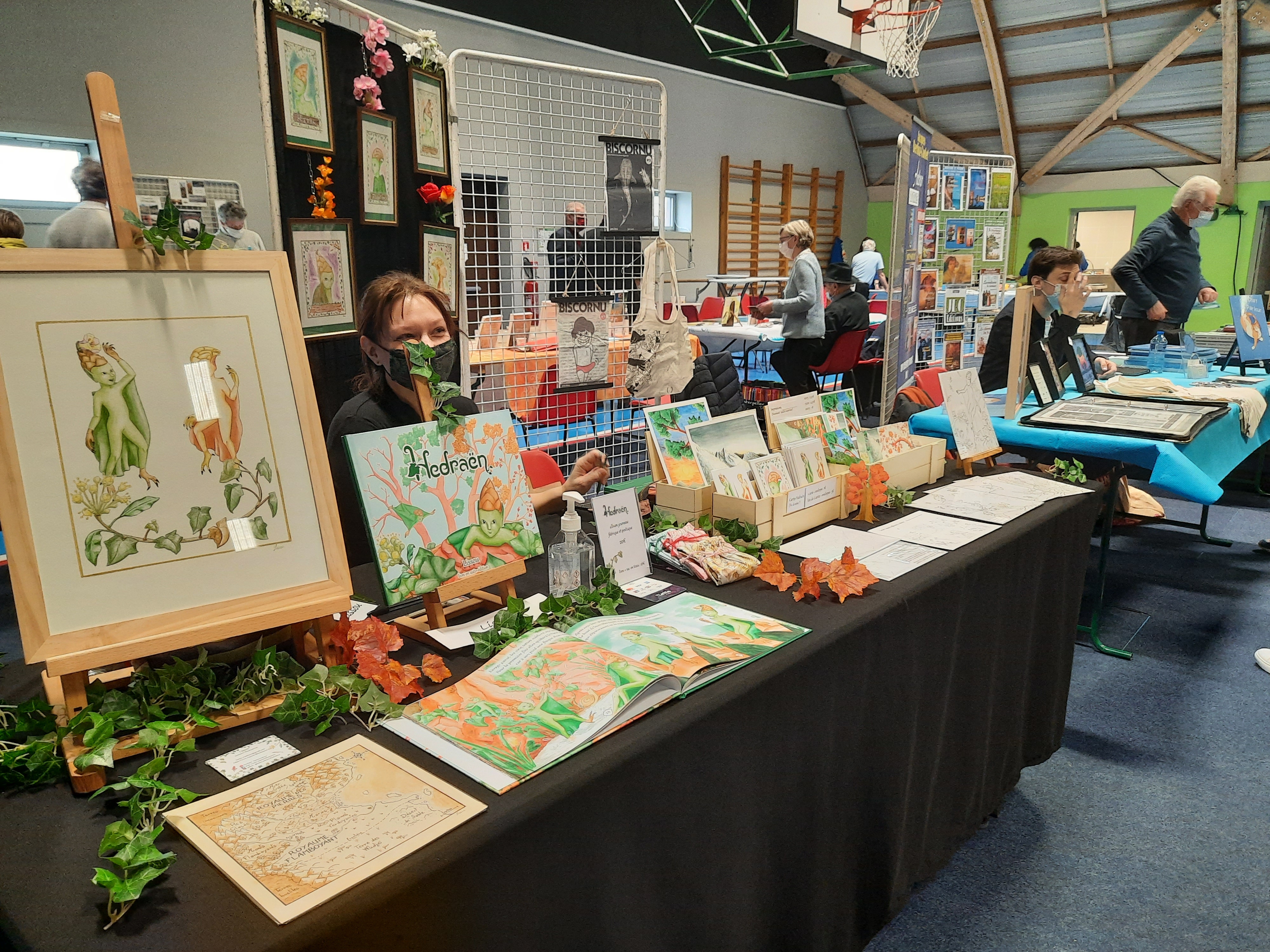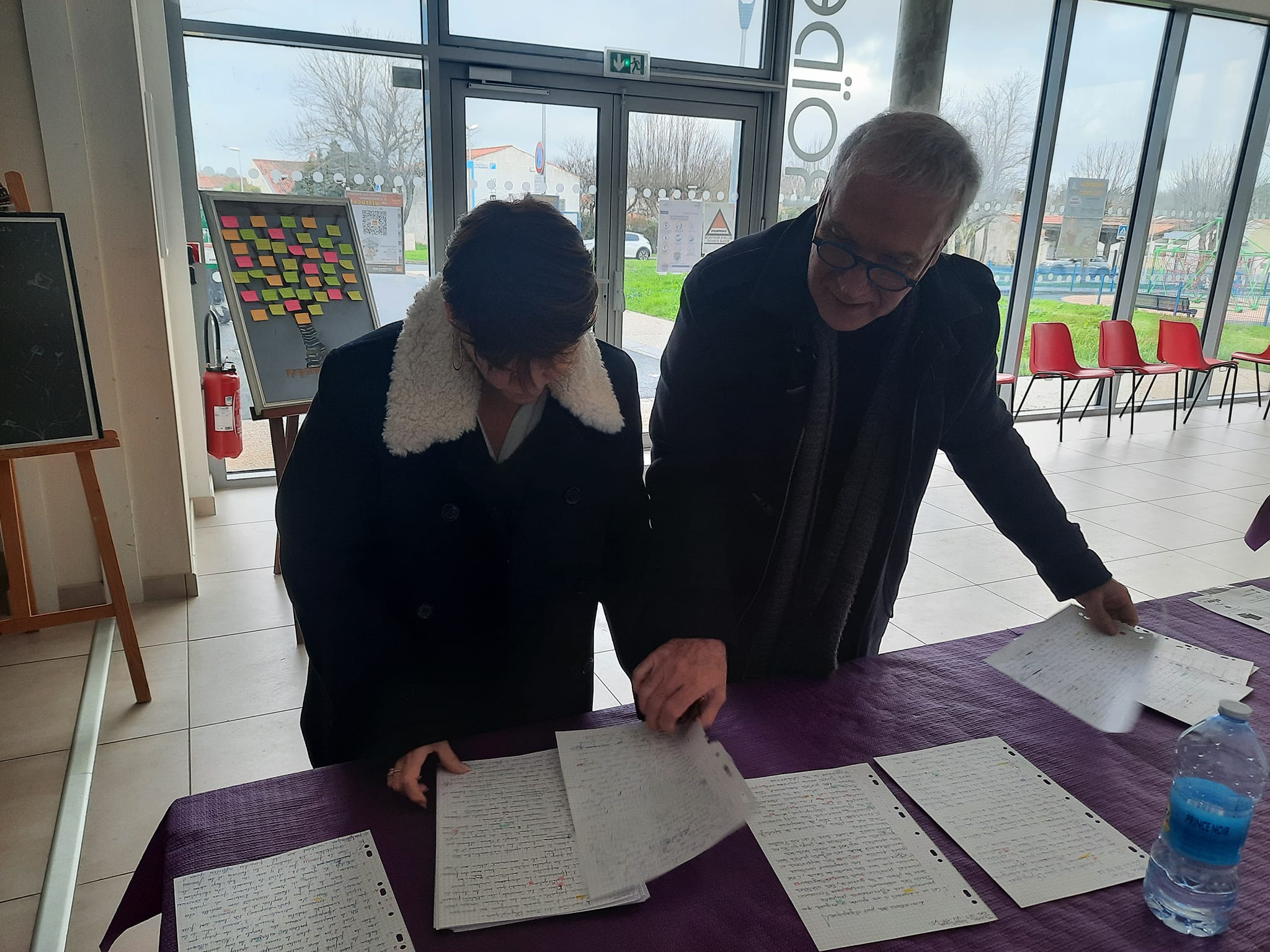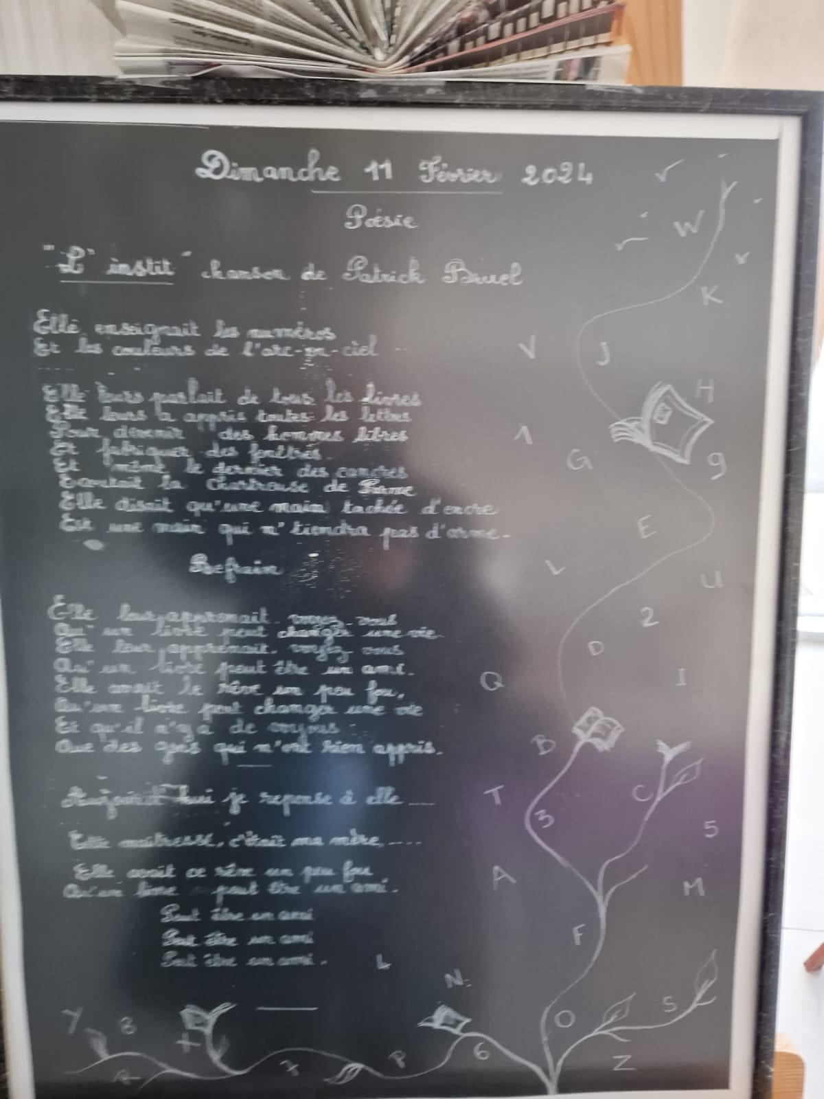 Le Dimanche s’est tenu le salon du livre local (3è édition) avec auteurs, illustrateurs, éditeurs et métiers du livre (reliure, calligraphie…) venus de max 50km autour du village. C’était l’occasion de remettre les prix aux lauréats de la dictée par le parrain Luc Turlan (merci aux exposants pour les lots, de beaux et nombreux livres ont honoré les lauréats), l’ouverture du salon a été réalisée en présence de notre député Olivier Falorni et le maire Jean-Luc Algay. Le prix de la plus belle écriture a été choisi à l’aveugle par Luc et son illustratrice. 2 enfants ont participé et on été récompensés. Le conseil d’administration s’était réuni pour préparer ce moment, une commission de sélection s’était concertée pour choisir une palette d’auteurs variés. La déco de l’espace ST Exupéry a été réalisée en collaboration avec l’Atelier Peinture du village.