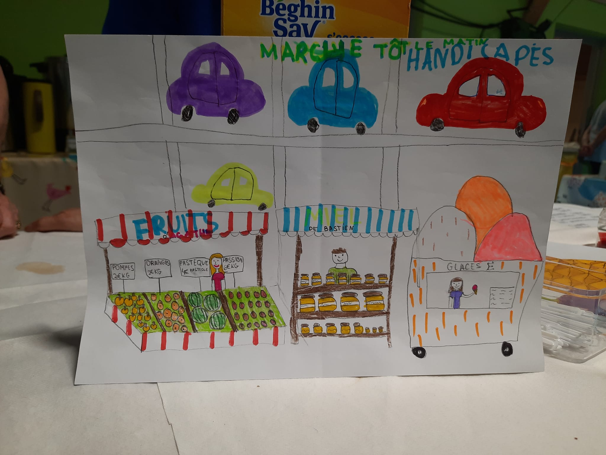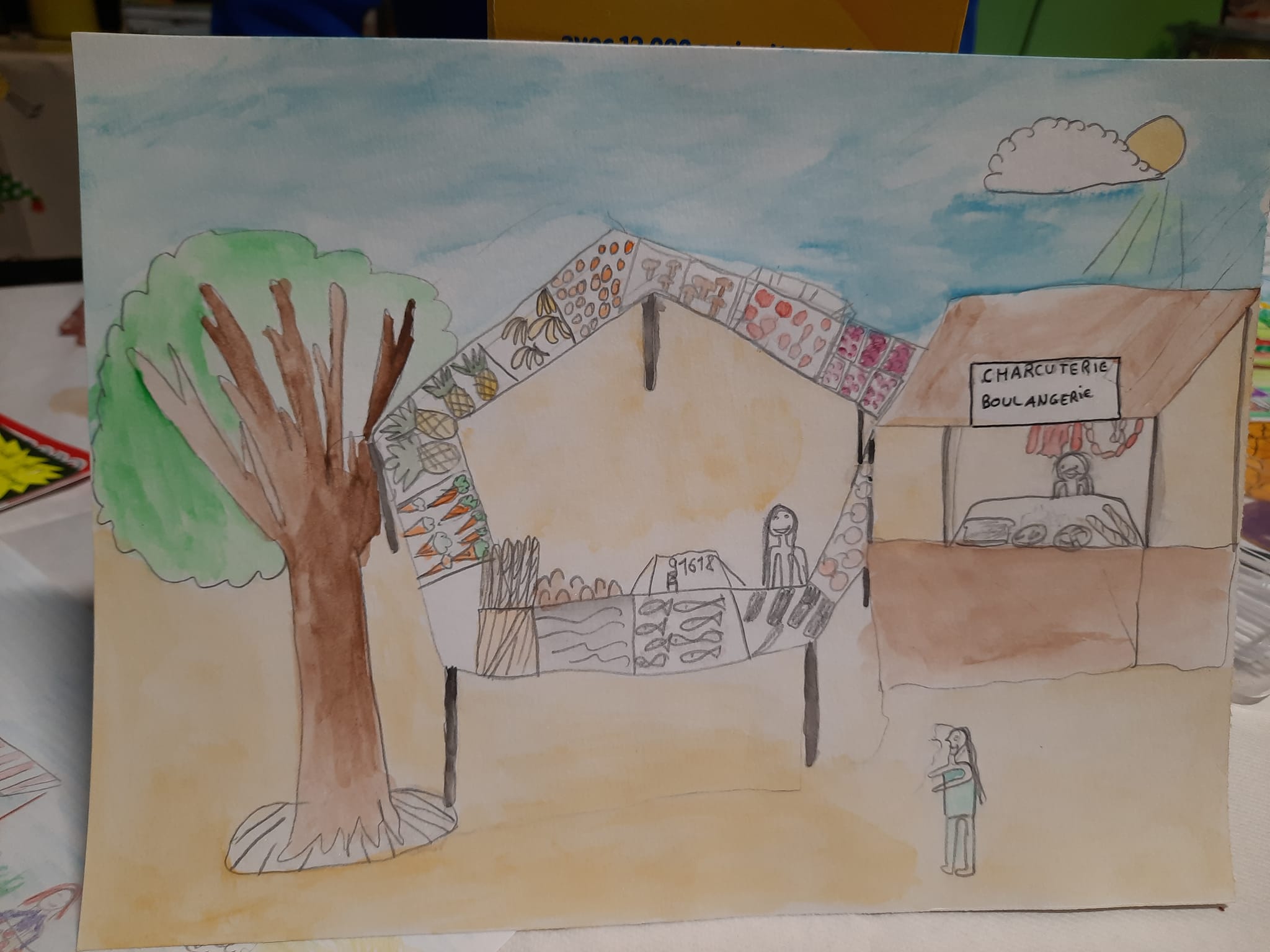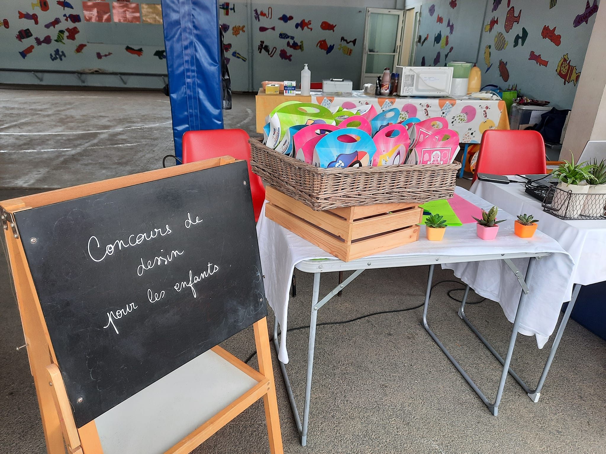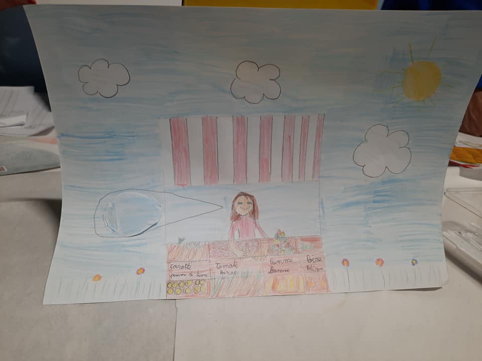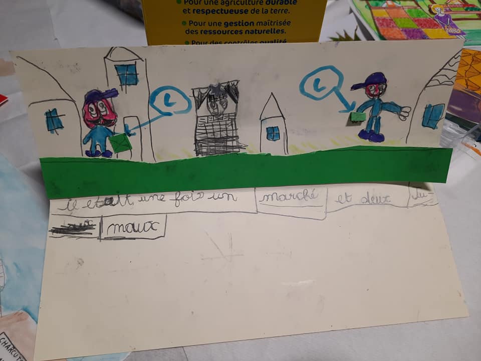 Concours de dessin et remise du chèque solidaire (dictée + animations enfants sur divers événements) à l’association Un pas pour Aylisse, concours de dessin sur le thème « le marché »