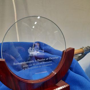 Bernard va rejoindre sa Corrèze natale, nous remecions notre ami, ancien président et toujours adhérent pour son implication à la Promo et lui offrons un moulinet pour les parties de pêche d’eau douce ! Et le maire Jean-Luc Algay remet à notre couple le plus ancien de l’association, présent depuis la création, la médaille de la ville en remerciement de leur implication dans la vie associative. Bravo et merci à vous deux, vous êtes de beaux exemples de bénévolat !