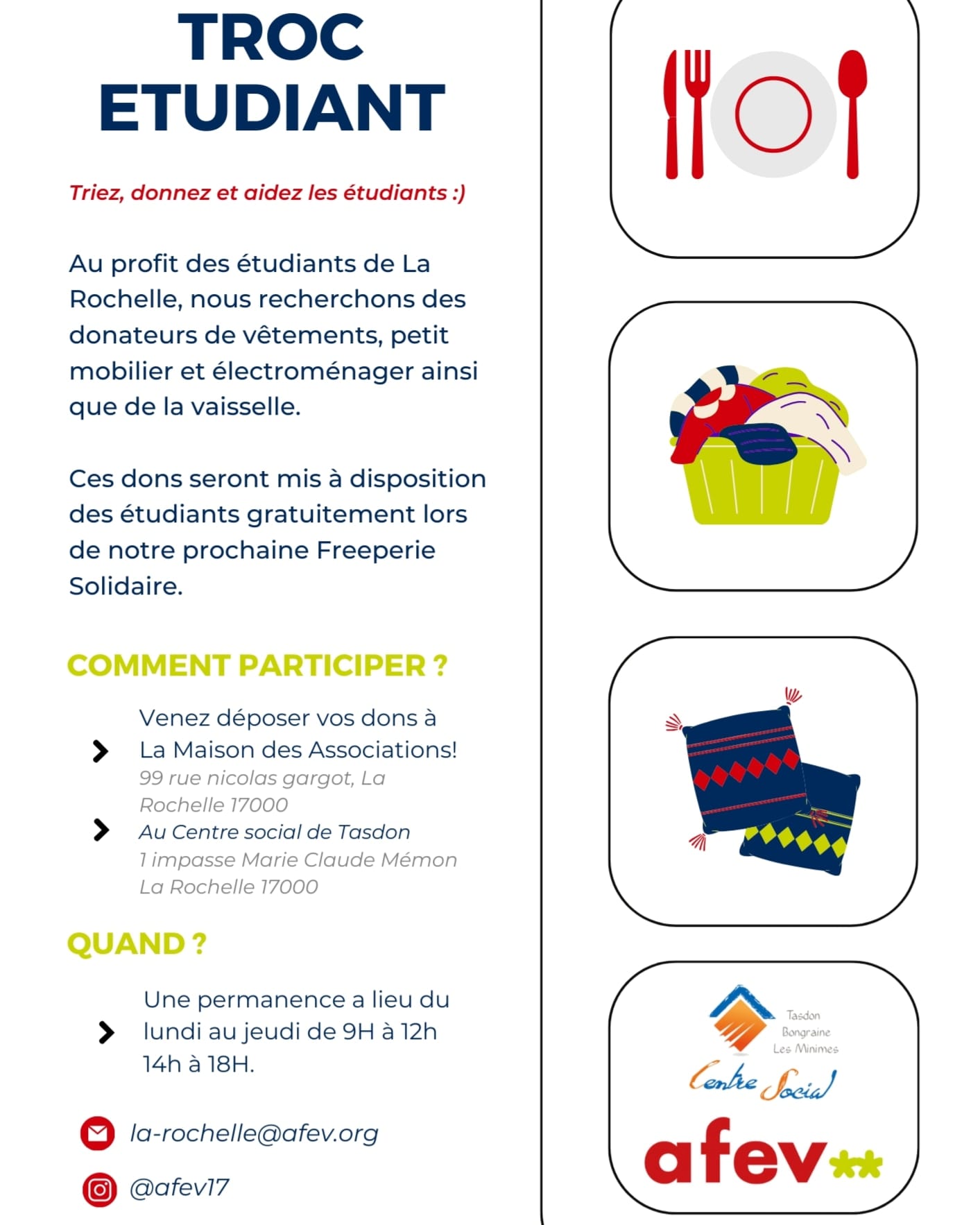animations au profit de l’AFEV, association qui vient en aide aux étudiants en précarité