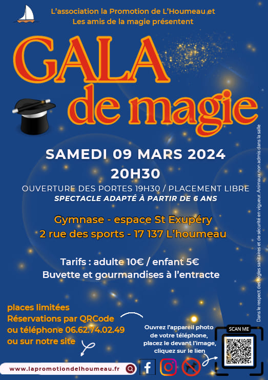 L’association La Promotion de L’Houmeau a fait venir l’association Les Amis de la Magie pour un spectacle rempli d’humour et d’étoiles dans les yeux. Accueil et entracte en close-up (tours de magie de proximité), hypnose, mentalisme et bien sûr des numéros de spectacle épatants : femme transpercée, lévitation, prédictions, femme coupée, transfert spatio-temporel, manipulations… magique !